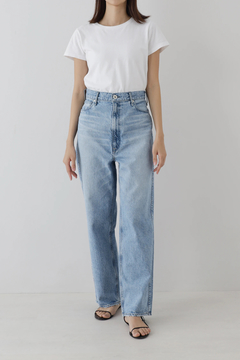 デニムらしいオーセンティックな表情のノンストレッチデニム地採用。茶綿を使用していないのでくすみのないきれいなインディゴブルーが特徴。ウエストをゆるっと落として腰履きでも、後ろの尾錠をぐっと絞って履いても可愛い1本です。