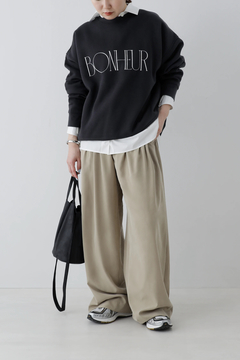 華奢なウエストバンドと、フロントに入った上品なプリーツがポイント効かせたデザインです。ワイドシルエットの適度な分量感にバックのゴムウエストが穿き心地の良さを叶えながら、こなれた雰囲気漂う大人のリラックススタイルを演出してくれます。生地は新登場した新改良した洗えるレーヨンと、環境に配慮したリサイクルポリエステルを使用した素材を使用。サンドウォッシュでこなれ感を出し、柔らかい風合いに仕上げています。