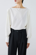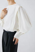 HAUNTの肩のラインと、ボリューム袖が印象的なデザインブラウス。