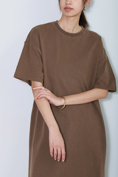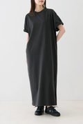 製品染め加工を施した中厚のコットン天竺で仕立てた、ヴィンテージ感のある風合いが特徴のショートスリーブワンピース。片側スリット入りのデザインが、動きやすさとスタイルを引き立てるポイント。サンダルやスニーカーと合わせてシンプルにコーディネートできる1枚。