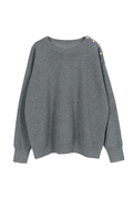 ウール混でありながら裏面にはストレッチ糸を入れているため、しっかりとした生地感のクルーネックニット。メタル釦のディテールがシンプルな中にもトレンド感をプラス。カジュアルからオフィスまで幅広く活躍する1枚。