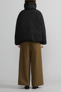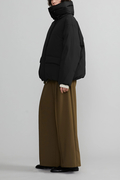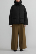 高品櫃なピュアグースダウンを使用し、繭に包まれるような優しい着心地が魅力のダウンジャケット。オーバーサイズシルエット、フードが収納されたボリュームのあるハイネック、フロントには大きな2つのフラップ付きのパッチポケットあり。