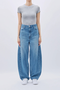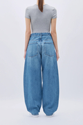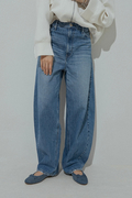 ヒップハング&裾に向かってテーパードするシルエット。股上は深めですが、ウエストはあえて大きめに設定し、腰穿きすることでイマドキな抜け感が出る1本。素材は25PFよりリニューアルしたupper hightsオリジナル素材を採用。より自然なヴィンテージ感の出る生地を目指して開発を重ね、古着らしいシボ感とタテ落ち感が特徴です。