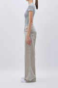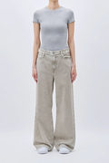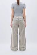 全体的にゆるっとしたシルエット&ミドルライズで今っぽく穿ける1枚に仕上がりました。素材は重厚感のあるシボ顔と相反して軽やかで柔らかいupper hightsオリジナル素材を採用。緯糸にオープンエンド糸を使用することで、肌に当たる面は清涼感のあるドライなタッチを実現しました。
