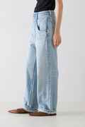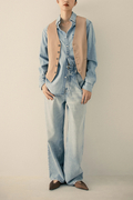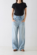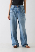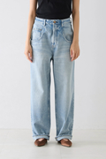 深く大きめのポケットディテールが特徴のアップデートモデル。シルエットやスタイル全体になじむようにバランスを調整。フロントビューにさりげないアクセントが生まれ、プレーンなトップスとも相性抜群です。経糸、緯糸双方にリターンコットン(紡績工程で発生する未利用綿を回収して再利用した糸)を採用した、独特のアタリ・シボ感・風合いが特徴の綿100%デニム地使用で、見た目のわりに、軽量で柔らかい素材感。