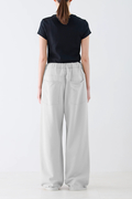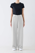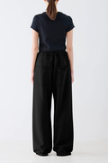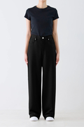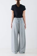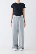 デニムのパターンをそのまま使用。5ポケット仕様を再現する為に 程よい肉感とハリのある裏毛素材を採用しました。後ろウエスト部分はゴム仕様、ウエストにドローコードも入っているためイージーにご着用いただける1枚。