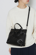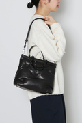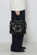 トップハンドルに加え、マルチウェアを可能にするショルダーストラップ付き。フロントには4ステッチがあしらわれています。