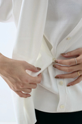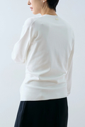 素材は鈍い光沢感が上品な印象を与えてくれる、柔らかな肌触りが特徴のハイゲージニット。同素材のスクープネックノースリーブを合わせてツインニットにも。レイヤード釦を活用して2WAYで楽しめます。