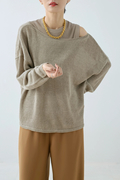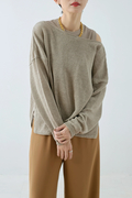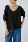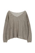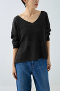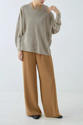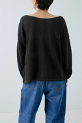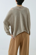 細番手で特有の上品な光沢感があるリネン100%の上質な糸で仕立てました。リネンのナチュラルな風合いと透け感を楽しめるニットです。