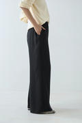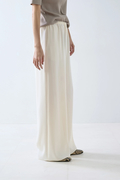 素材は柔らかさと張り感のバランスが取れた、触り心地抜群のダブルバックサテンを採用。ストンと綺麗に落ちる素材のため、体のラインを拾いにくく、しわになりづらいのもポイント。程よいワイド感、ドローストリングでウエスト調節可能。カジュアルにもフォーマルにも使用できる汎用性と、ウォッシャブル素材のイージーケアで一年を通して人気のアイテムです。