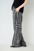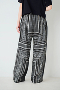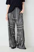 素材はHAUNTオリジナルのバンダナプリント柄の風通しのよい薄手のポリエステル。シワになりづらく、畳むと小さくなるためおでかけシーンでも活躍します。シンプルなトップスを合わせるだけで、特別なスタイリングが叶う大人のための柄パンツです。