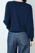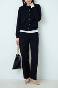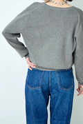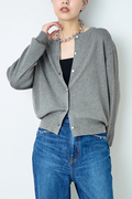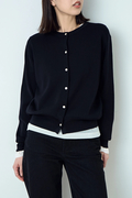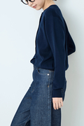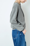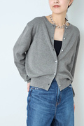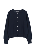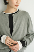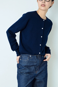 ポイントは繊細に輝くボタン。 顔周りを美しく見せるクルーネック、インナーとしても羽織りとしてもすっきりと着こなせるジャストなサイズ感で、デイリーからオフィスまで着こなしを格上げする一着。