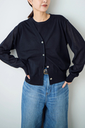 カーディガンは、さっと羽織りやすい着丈とシルエットで、ノースリーブとバランス良くコーディネートできるように設計。バッグに入れて持ち運びもしやすく、温度調整に重宝。 ノースリーブは、一枚で着用してもインナーとしてもサマになるベーシックなデザイン。カーディガンと合わせることで、素材とカラーに統一感のある上品な着こなしが楽しめます。