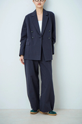 STATE OF MINDのリネンブレンド素材で仕立てた、クラシックなダブルジャケットを軽やかに再構築した「flowy jacket」