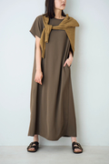 素材は鈍い光沢感と落ち感がシルエットを綺麗に見せてくれる、肌離れの良いドライなタッチ素材を採用。軽やかで風通しが良く、汗ばむ季節でも快適にご着用いただけるドレスです。