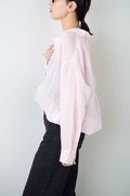 素材は透け感のある薄手麻100%。吸湿性と通気性に優れ、肌に心地よいドライな肌触りが魅力。水にぬれると一時的に収縮し、しわになりやすいため、干す際にはしわを伸ばして干していただくことをお勧めいたします。