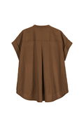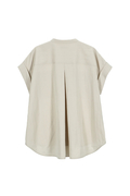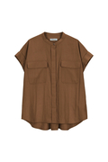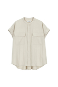 STATE OF MINDのハリのあるツイル素材で仕立てた半袖ブラウス「twill pocket blouse」