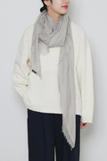 ストーンウォッシュ加工を施すことで色合いがソフトになり、絶妙なメランジが描かれます。程よく透け感があり軽やかなので、さらりと巻くだけで美しいドレープが描かれ、コーディネイトを問わずスタイルを上品に仕上げてくれる、まさに名品ストールです。