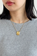 丸み帯びたスクエアモチーフのチェーンネックレス。シンプルながらも目を惹くデザインで、幅広いシーンで活躍します。