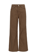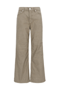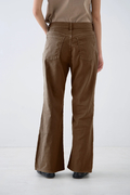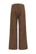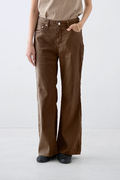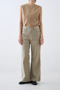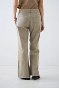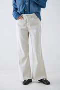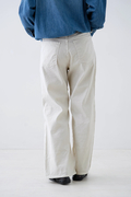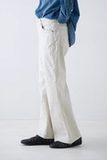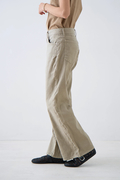 ウエストはミッドライズ仕様で、腰まわりをやさしく包み込みつつ、ラフすぎない絶妙なバランスに。トップスをインしてもアウトしてもバランスがとりやすく、さりげない脚長効果も◎。ヒップや太ももには適度なゆとりを持たせつつ、裾にかけてほんのり広がるナチュラルなフレアシルエット。タイトすぎず、ワイドすぎず、どんなシューズとも好相性で、抜け感のあるスタイルを叶えてくれます。