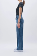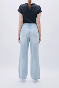 ゴム入りのイージーパンツ仕様ながら、ヒップなどバックシルエットを綺麗に見せたいという拘りから、ゴムを両サイドに入れ、後ろ姿はすっきりのまま快適なはき心地を実現。