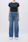 柔らかい綿の肌触りを持ちながらも、ポリエステルの持つ吸水速乾性でドライなはき心地、驚きの軽さを併せ持つRED CARD TOKYOの夏の定番。機能性素材らしからぬキャラクターのしっかりとしたオーセンティックなデニムらしい表情と本格的な加工感はそのままに、暑い時期でも快適に過ごせるデニムです。