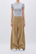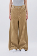 シルエットは内股の隙間が出来ないようにパターン改良したワイドパンツ。腰ばきでゆるっと足元をクッションさせたはき方、ヨーク部分に付いている尾錠を絞ってハイライズにするはき方の、2WAYでご着用いただけます。