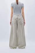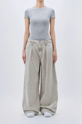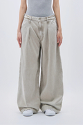 全体的にだぶっとしたバギーパンツで、生地に落ち感があるためタック部分もストンと下に落ち、スタイルが良く見えます。