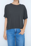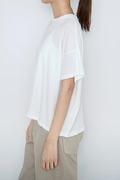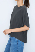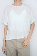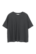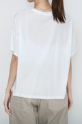 身幅にゆとりがあり、ドロップショルダーで全体的にBOXYなシルエット。素材は26SSよりアップデート。カリフォルニアの雪解け水で育った非常に貴重な原綿を通常よりも時間をかけた工程で紡績をした強撚天竺素材を採用。吸湿速乾性と肌離れの良さはそのままに、より上質な清涼感とソフトなタッチになりました。