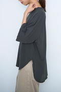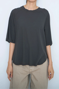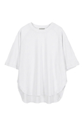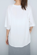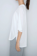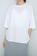 ラグランスリーブ、ラウンドヘムデザインがポイント。素材はカリフォルニアの雪解け水で育った非常に貴重な原綿を通常よりも時間をかけた工程で紡績をした強撚天竺素材を採用。吸湿速乾性と肌離れの良さはそのままに、より上質な清涼感とソフトなタッチになりました。