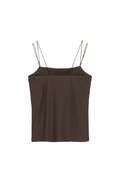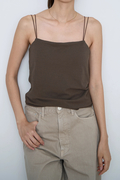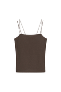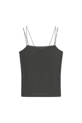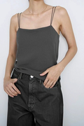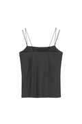 繊細なゴムスピンドルを使用した肩紐で着用時のストレスを感じさせない1枚。素材は吸湿速乾性があり、肌離れの良い強撚天竺素材を使用。