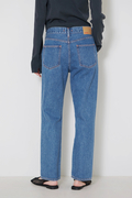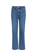 トップスのイン・アウトに関わらず使いやすいライズ感で、ハイライズだとどうしても気になるおなか周りをすっきりと見せてくれます。素材はNEEDBYオリジナルデニム地採用。横糸にオープンエンド糸を使用。染色にはi-Nextという方法を採用し、サステイナブルなものづくりを意識し開発をしました。様々なコスト(加工コスト、エネルギー、製作コストなど)を抑えながらもNEEDBYらしい加工感が表現できるよう試作を重ね、メイドインジャパンならではのヴィンテージ感のある生地に仕上がりました。