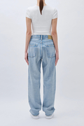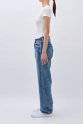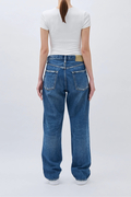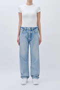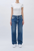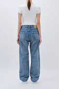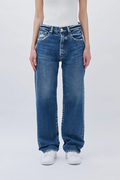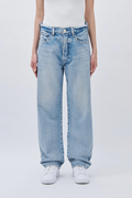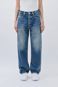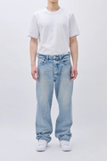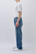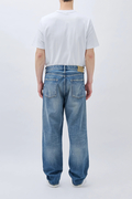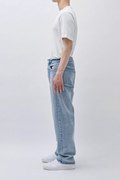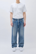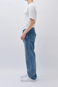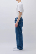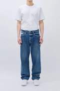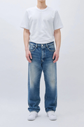 ヴィンテージデニムらしい無骨さを残しつつも足が綺麗に見えるストレート。ジャストサイズでも腰履きでもかっこよく履きこなせる万能型で、男女共に定番として着用できる1本。素材はNEEDBYオリジナル開発生地。横糸にオープンエンド糸を使用、染色にはi-Nextという方法を採用しサステイナブルなものづくりを意識して開発。本格的なセルビッチ仕様で、しっかりとした生地感ですが軽いのが特徴です。