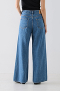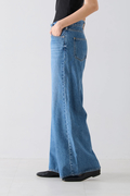 ワイドのため分かりにくいですが、寸法上は膝から裾にかけて広がりをもたせ足長に見えるフレアシルエット。素材は柔らかくしなやかで、ドレープ感が出るリヨセル混のオリジナル素材。トップスをインしてもアウトしてもバランスよく、ハイライズだと気になりがちなお腹周りもすっきりと見せてくれる1枚。
