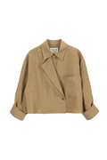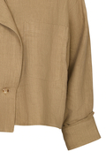100%フラックスリネンを使用し、洗い加工によるやわらかな風合いが特徴。クラシックなポイントカラーにリラックス感のあるボクシーシルエット、アシンメトリーなフロントプラケット、胸元のパッチポケットと、シグネチャーであるダブルロールのボタンカフスで仕上げられています。