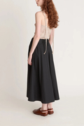 100%オーガニックコットンのポプリン素材で仕立てたAラインスカート。ウエストタック、サイドシームジッパー、バックウエストのゴム仕様、そしてダブルタイベルトのディテールが特徴です。