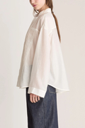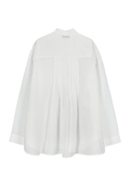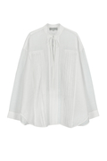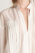 柔らかなテンセルブレンド素材で仕立てた、リラックス感のある長袖Vネックシャツ。シアーな素材感、ネックタイとヨークから裾へと続くピンタックのディテールが特徴です。