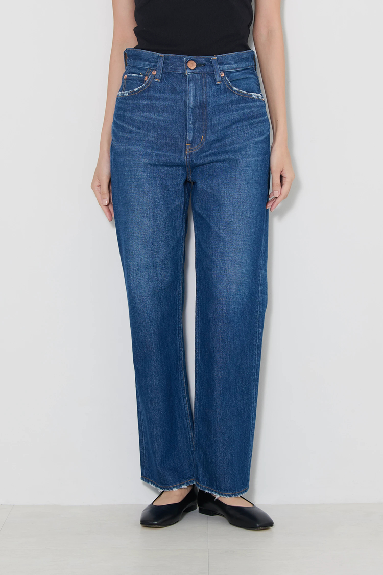 膝や裾は大きく取ったupper hightsの中で最もワイドなストレートデニム。