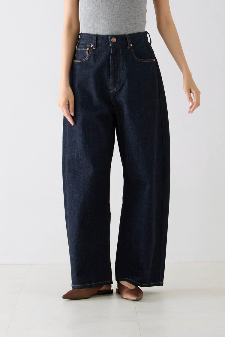 ウエストを絞りつつ、ヒップにゆとりがあるメンズライクなストレートデニム。