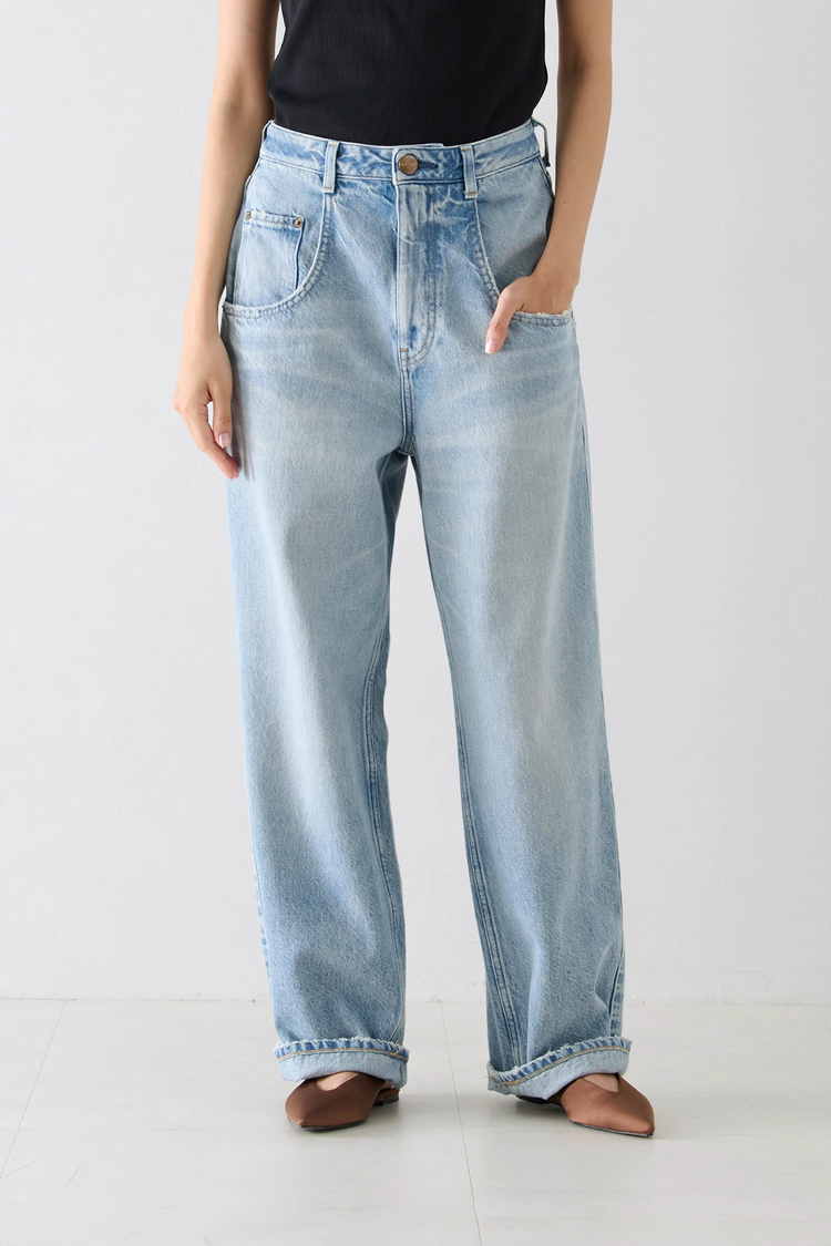 程よいワイド感でリラックスした雰囲気を持ちながらフェミニンなフィットが特徴で足長効果を一層強めた新作ルーズストレートモデルです。