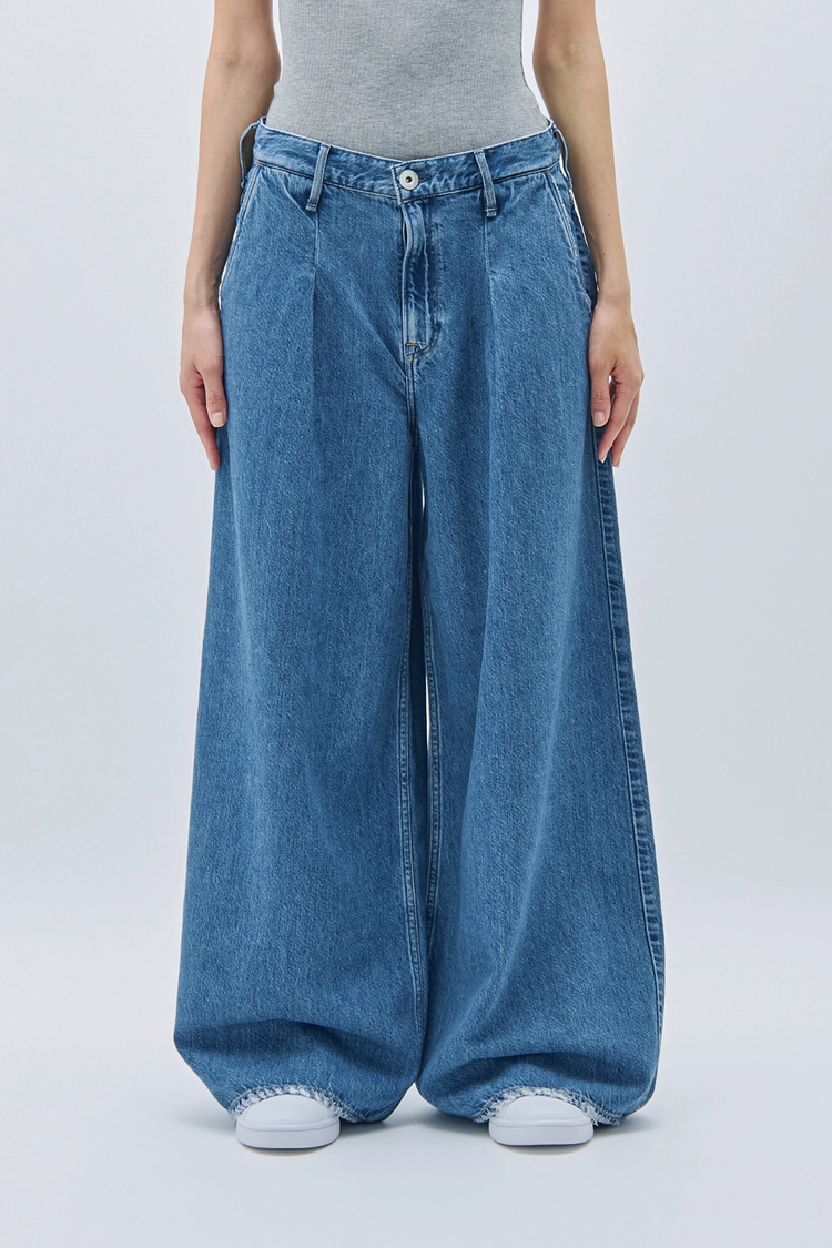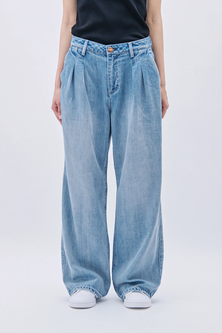 リヨセル混で柔らかさが特徴の「FEATHER JEANS」シリーズからタック入りミドルライズワイドモデルが登場。