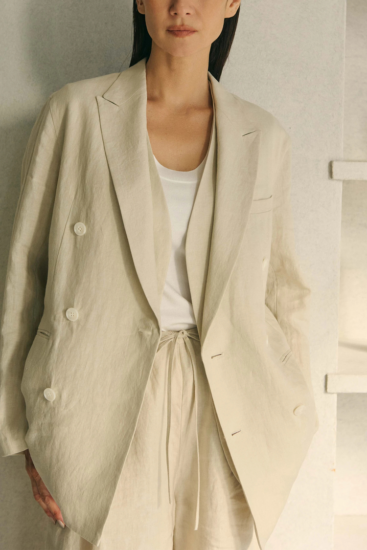 涼しく、軽く、品よく決まる。リネンの柔らかさに計算されたシルエット。