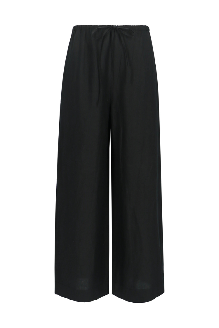 ドローストリングでウエストが調節可能、脚の形を拾わないワイドシルエット。