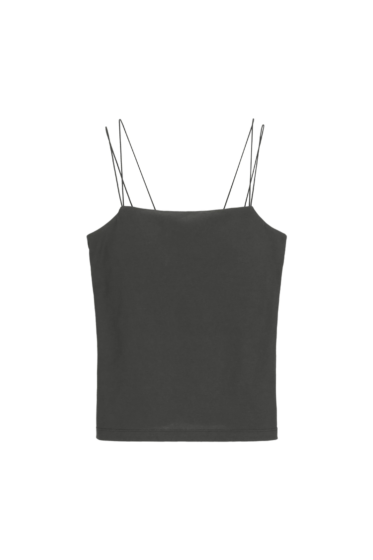 デコルテを綺麗に見せてくれるネックデザイン、インナーを選ばないワイドなショルダーストラップが特徴で、1枚でも、