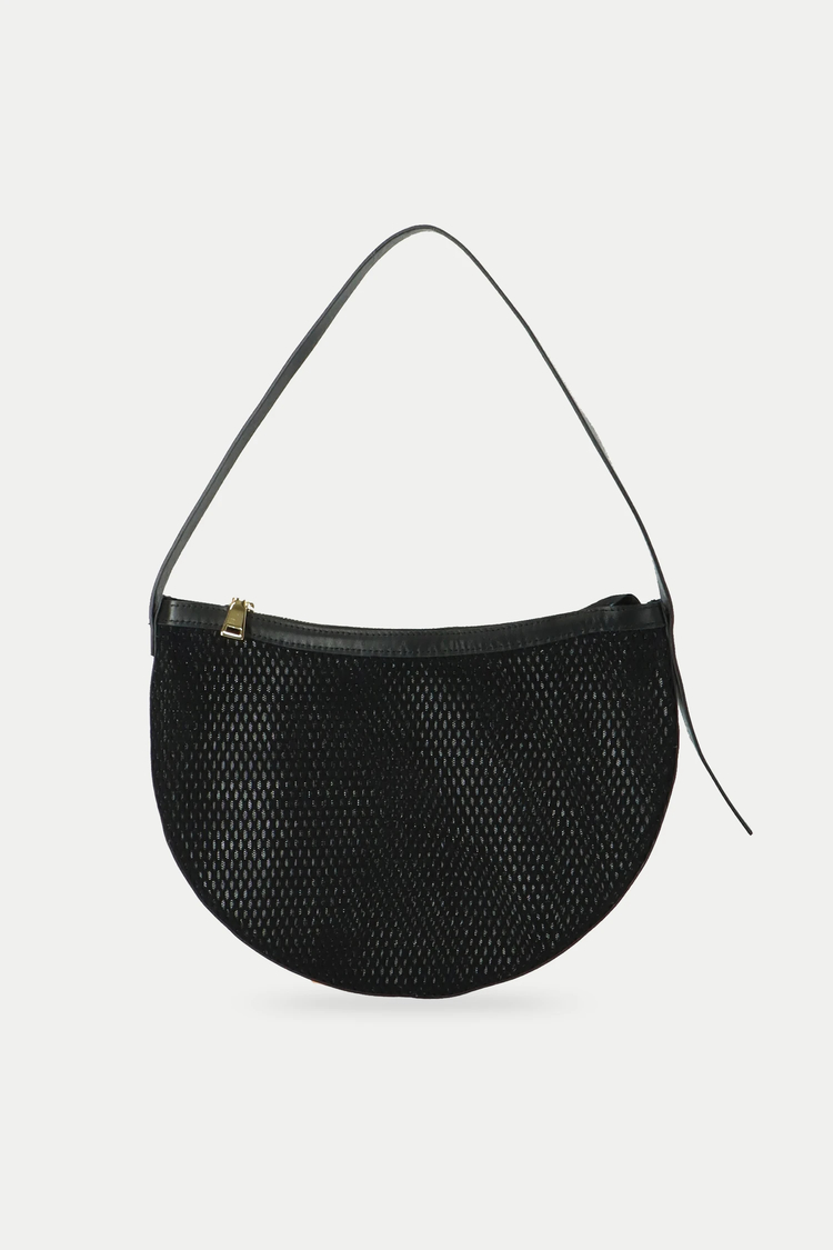 「オールブラックでも重くならないリネンの軽やかさに、ベージュを差してニュートラルな印象をプラス。小物で差すシルバーの煌めきやメッシュの透け感も大切。シャツをインしてオールインワン風に着ると、緩さの中にきちんと感もあって大人っぽいですよね。」