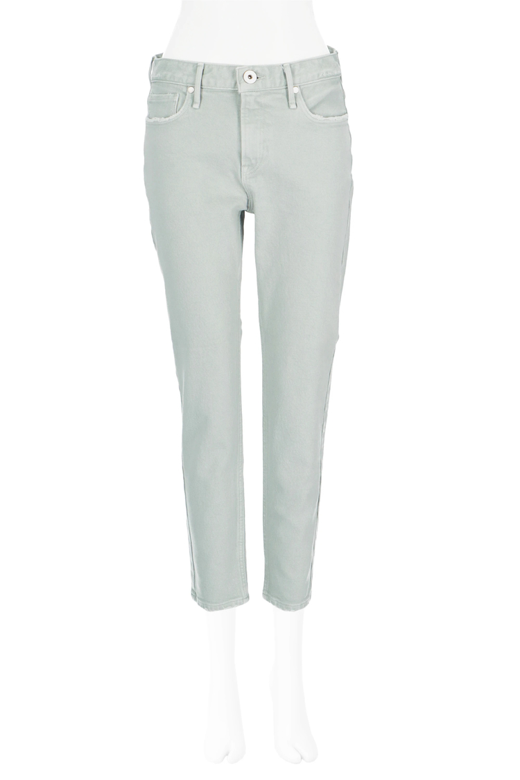 合わせたデニムのカラーはFIZZ。軽さを出すために淡いブルーのデニムと、インナーのニットも水色で淡くまとめました。